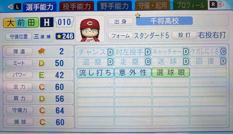 おはようKジローで投手としても登板しているので、こっそり投手能力もつけてます。高校時代のメインの三塁手とドリームトーナメント編で守った遊撃手以外は、守備適正低めにしています。